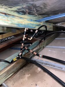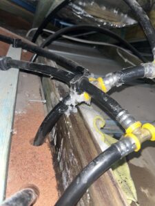 We replaced a faulty above-ground Pressure Reduction Valve (PRV) with a new isolating ball valve and PRV to improve pressure management and long-term system reliability. We then confirmed the water pressure readings: 700kPa at the front hose tap and a reduced 500kPa at the rear hose tap, indicating successful pressure regulation after the PRV replacement. We complied with Safe Work Method Statement protocols for working in roof voids, ensuring a safe and responsible approach during ceiling-level repairs. And finally removed and reconfigured faulty SDR9 cold water pipework located above the bathrooms. This section was cut out and replaced to restore proper function and flow.